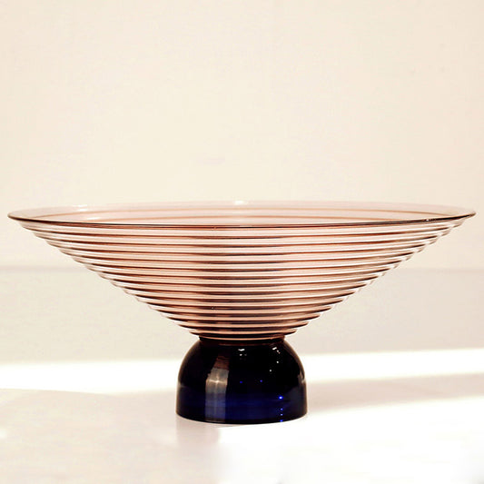 LOW BOWL SMOKEY PINK GLASS WITH PEDESTAL