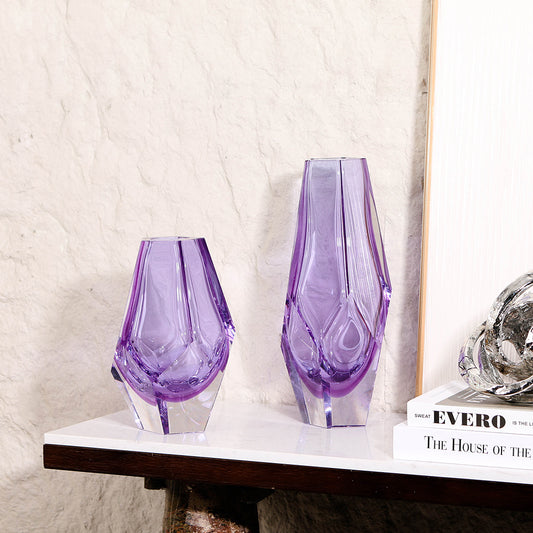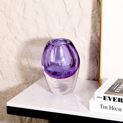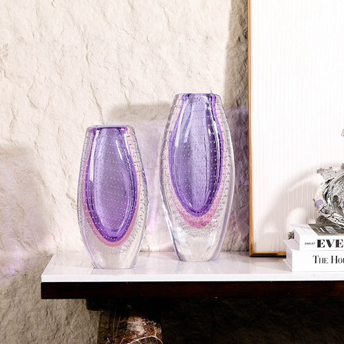 PURPLE CYLINDRICAL HAND-MADE GLASS VASE