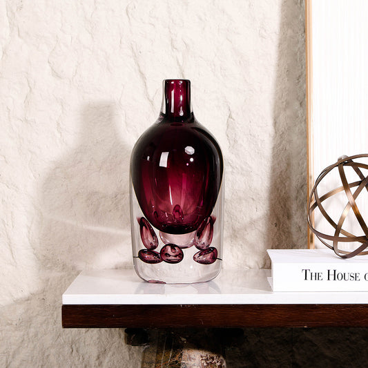 MAROON BUBBLES HAND-MADE GLASS VASE