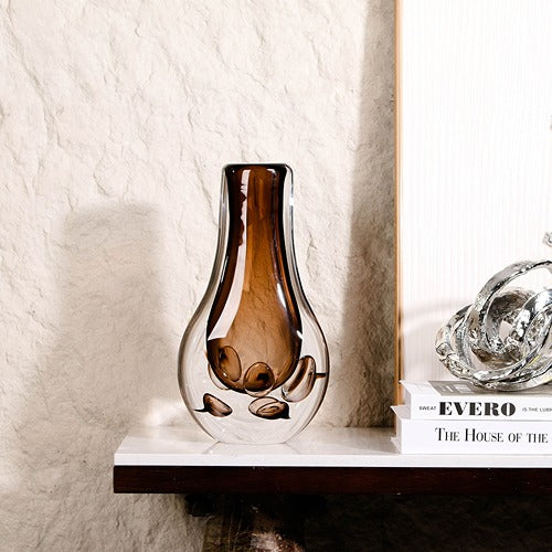 LIGHT BROWN & BLUE HAND-MADE GLASS VASE