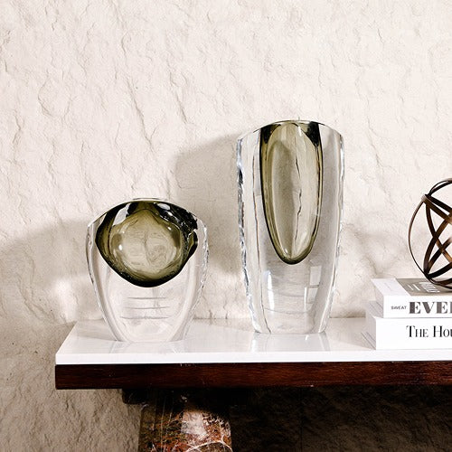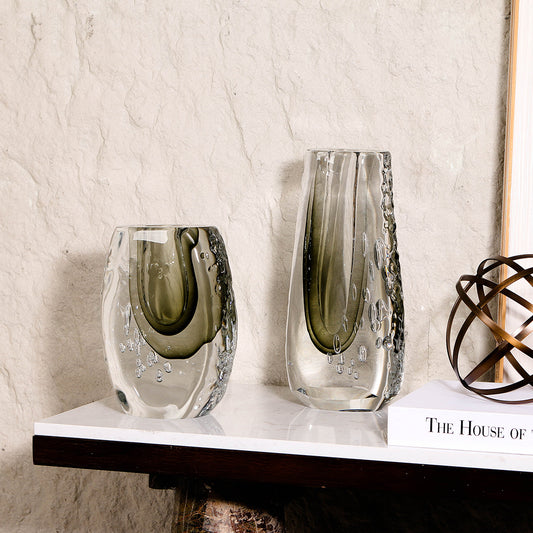 LIGHT CHARCOAL HAND-MADE GLASS VASE