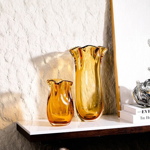 LIGHT YELLOW HAND-MADE GLASS VASE