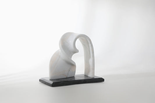 White Resin & Marble Abstract Art Sculpture