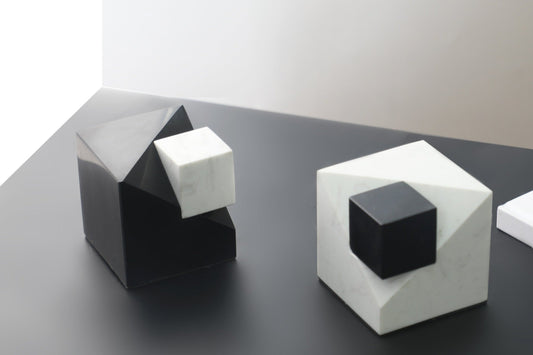 Black Marble Cube Sculpture