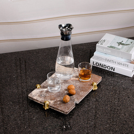 Beige & Brushed Gun Metal Pu Leather & S/S Steel Rectangular Tray