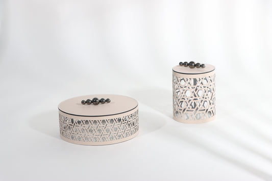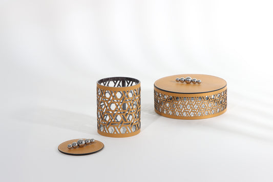 Khaki Micro-Fiber Leather & S/S Steel & Acrylic Storage Box