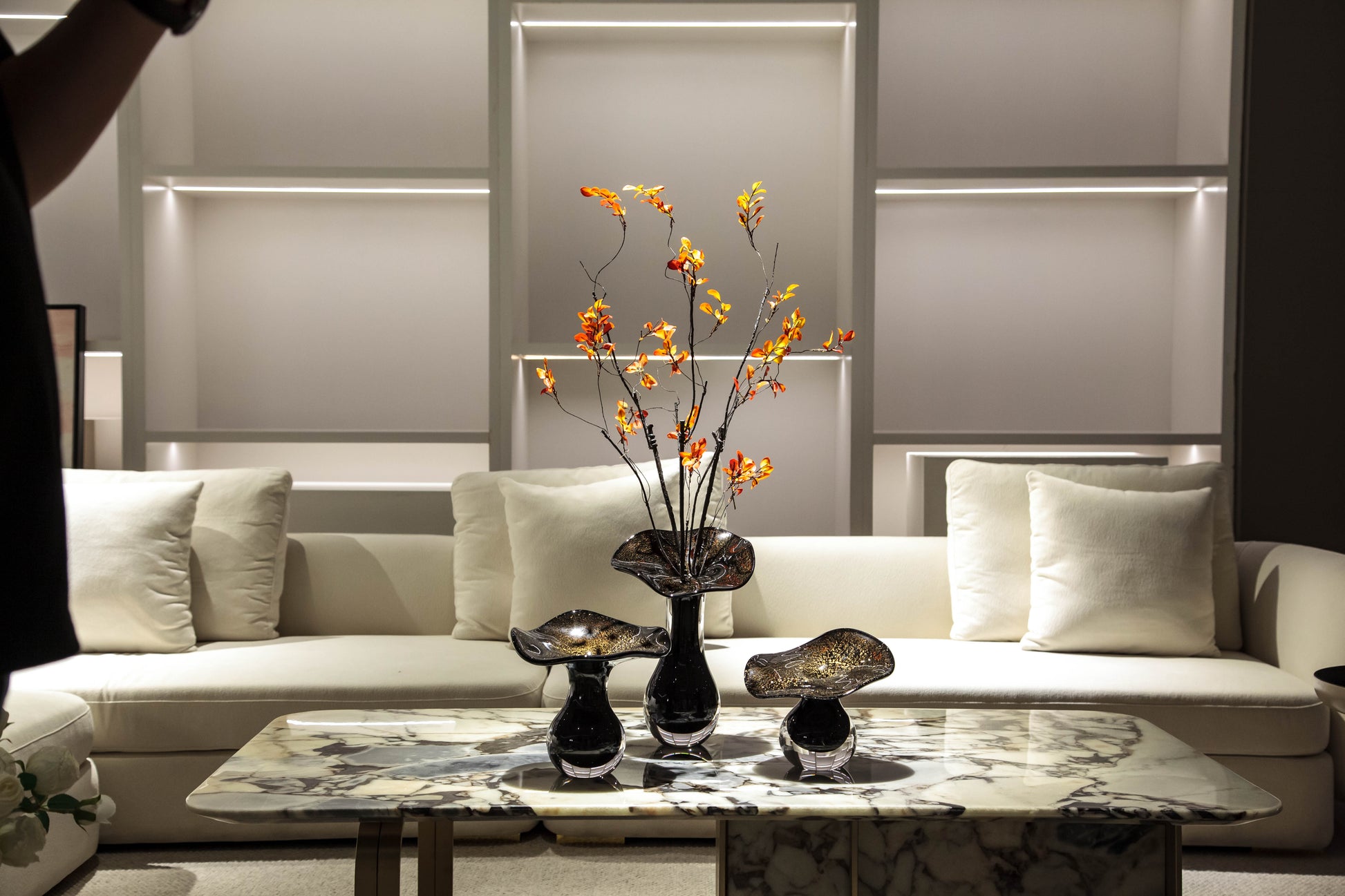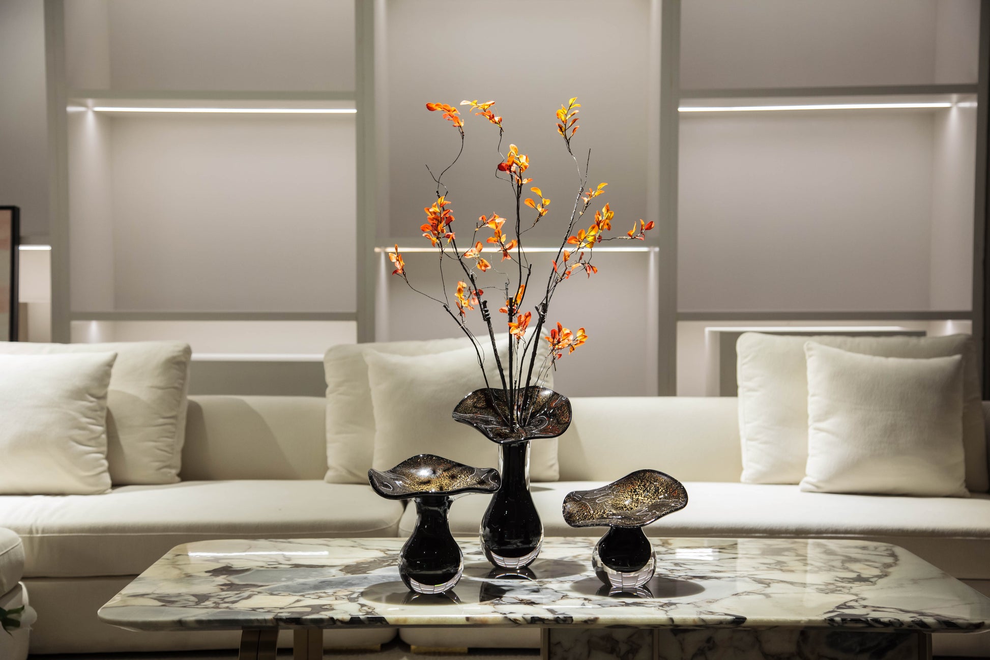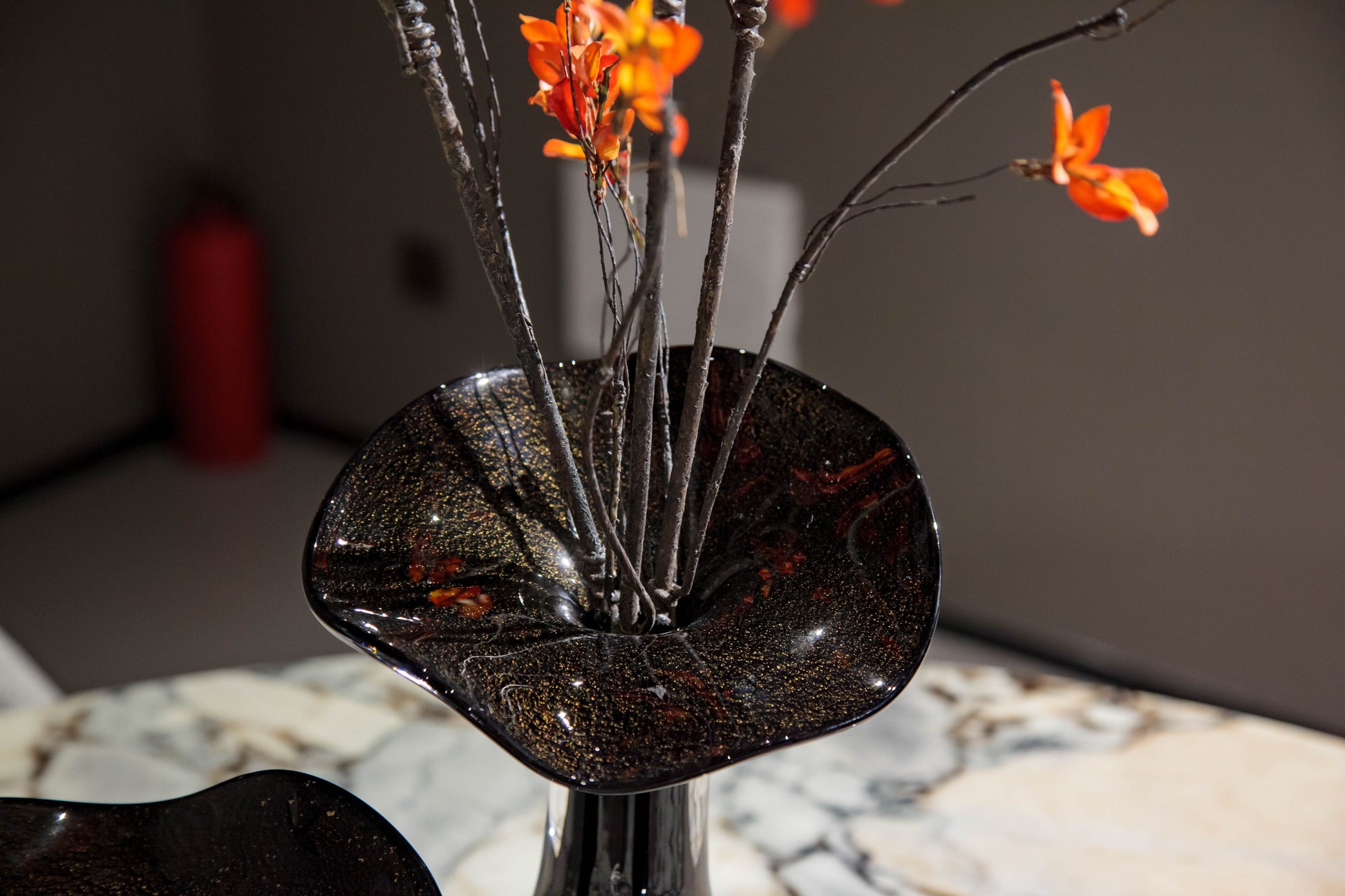 Black with Gold Accents Flower Desktop Glass Sculpture