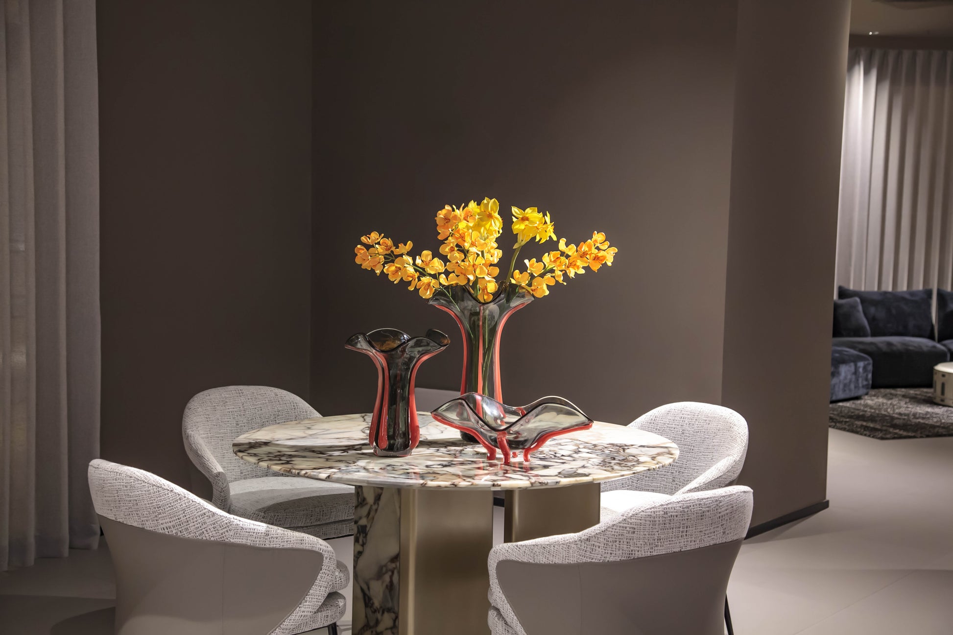 The Vase by Mayaze is a stunning centerpiece that brings a touch of refined elegance to any living room, entryway, or side table. Its sophisticated silhouette and generous size make it an effortless statement piece, perfect for displaying fresh blooms or standing alone as a sculptural accent. Designed to complement modern interiors, this vase enhances the beauty of consoles and shelves alike, adding warmth and a sense of calm to your space. With a height of 500 mm and a diameter of 320 mm, the Vase-L balances presence and grace, transforming everyday moments into luxurious experiences. Elevate your home décor with this timeless piece that embodies the perfect blend of modern style and elegant charm.